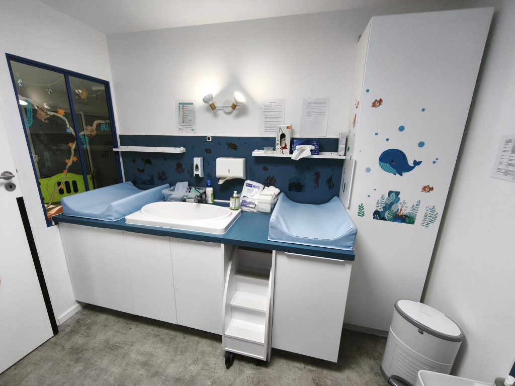Là aussi, vos enfants apprendront l’autonomie : un escalier permet à vos enfants de monter sur la table à langer dès qu’ils le peuvent, nos WC rendent vos enfants autonomes car ils sont adaptés à leur taille et un lave main est à leur disposition à leur hauteur.
