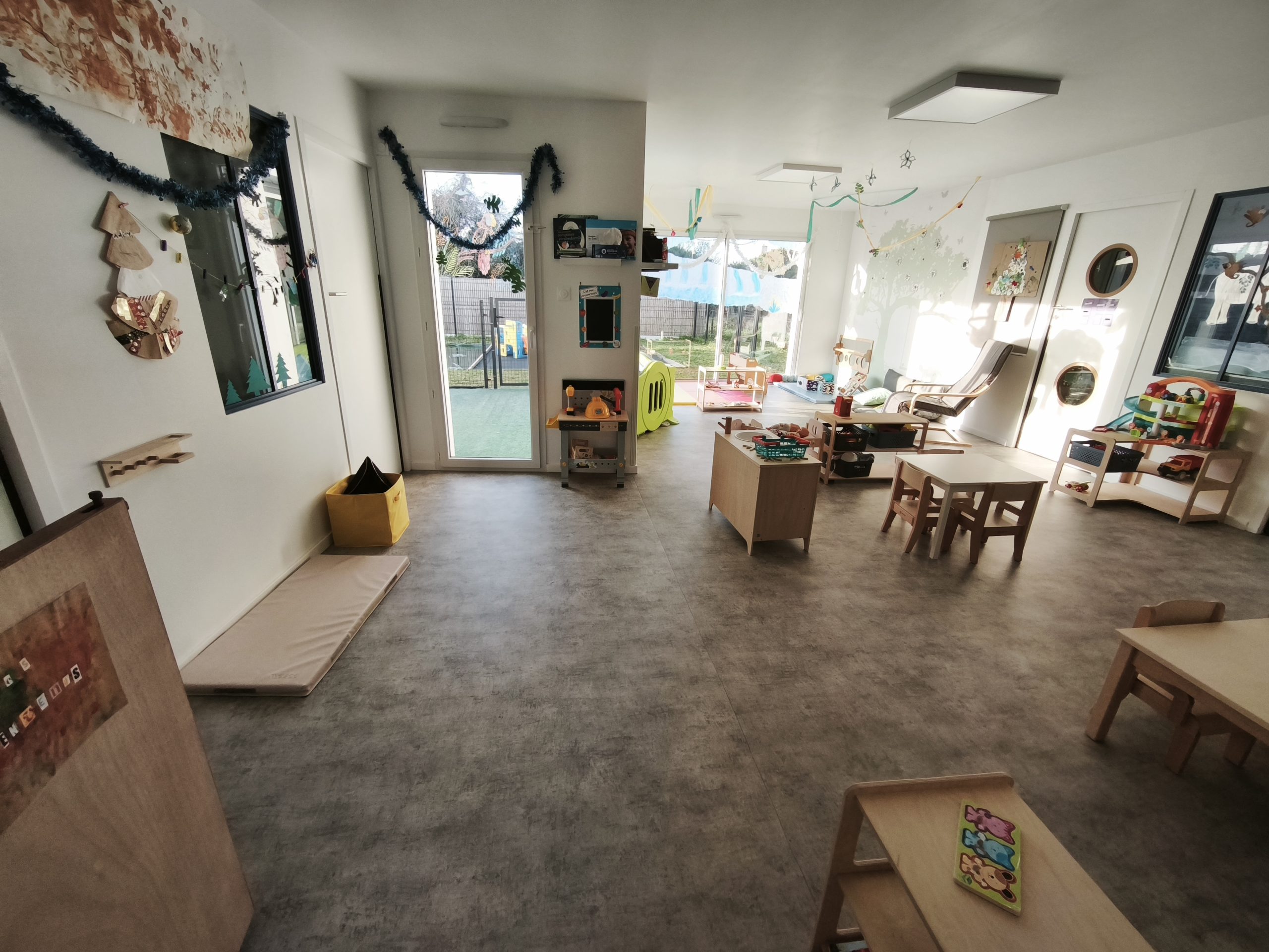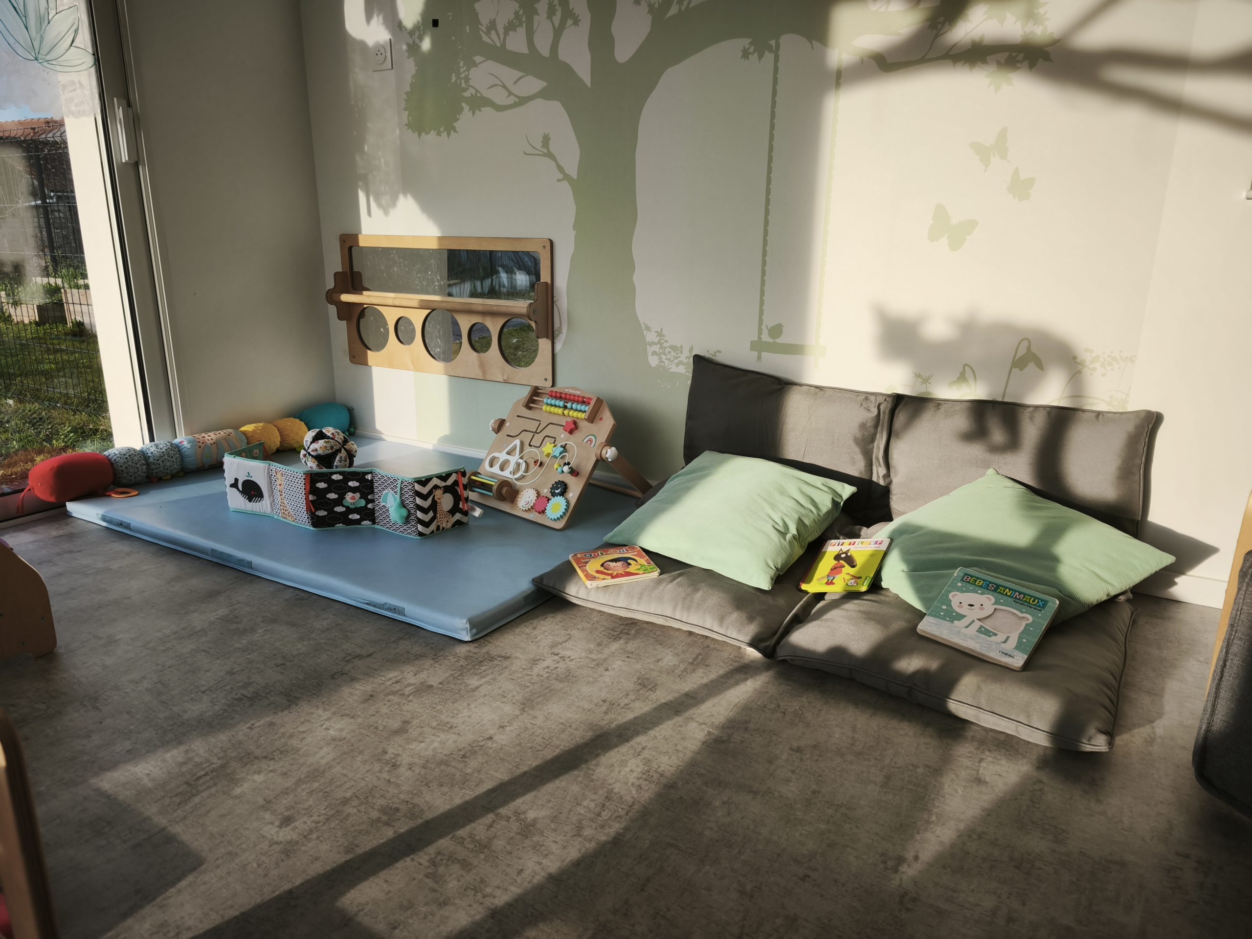 45m² complètements ouverts permettent plusieurs apprentissages : la motricité de déplacement, la motricité fine, l’imitation et le développement.