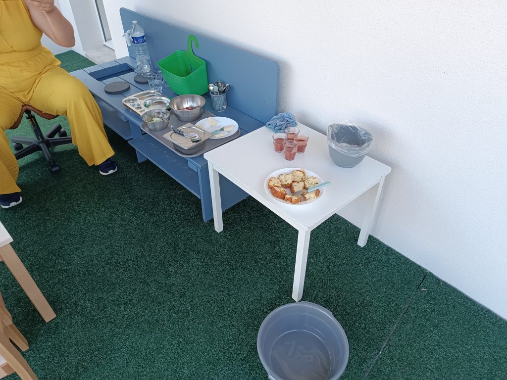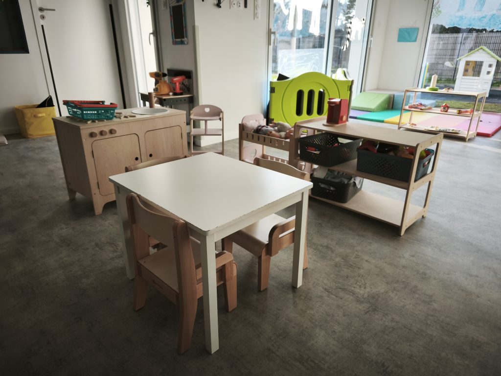Cet espace leur permet de cuisiner, de s’occuper d’un bébé (poussette, chaise haute, change…), de jouer aux voitures et aux camions…