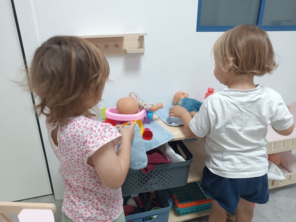Le coin imitation incite les enfants à reproduire les gestes des parents et des adultes qui les entourent.