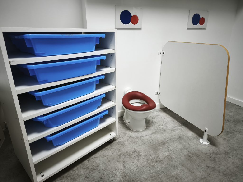 Deux WC adaptés à leur taille sont à leur disposition pour l’apprentissage de la propreté.