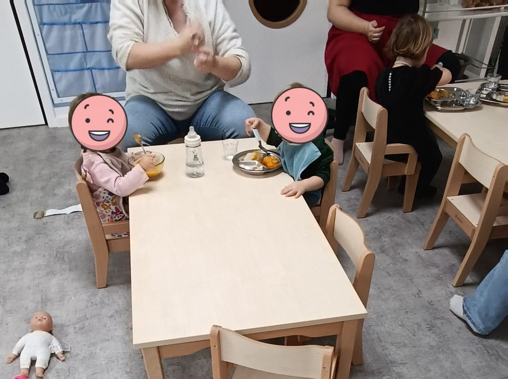 Pour apprendre à manger tout seul, nous commençons par une double cuillère : une pour l’enfant et une pour le professionnel.