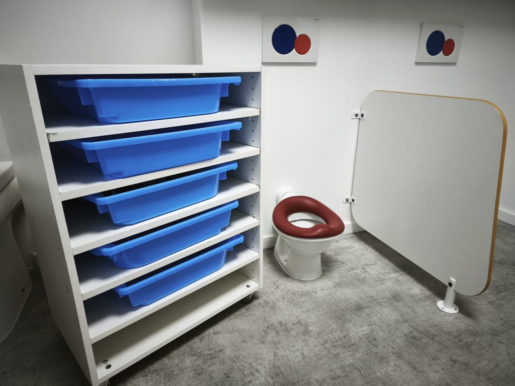 Les enfants ont à leur disposition un pot et des toilettes à leur hauteur.