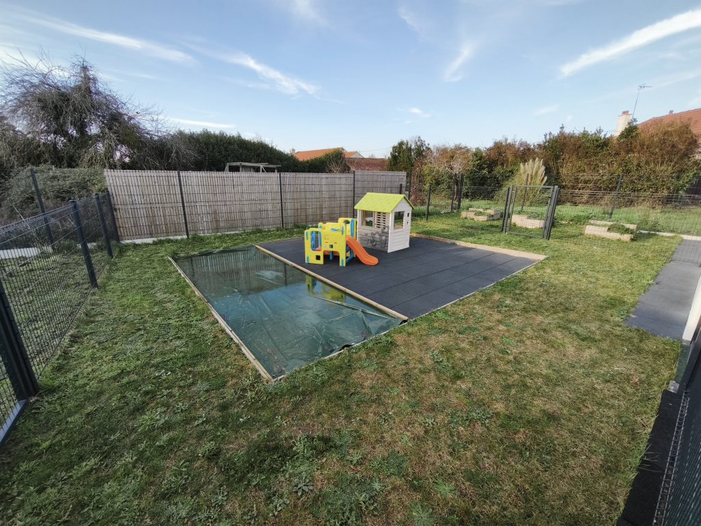 Une pelouse synthétique a été installée pour le confort des enfants été comme hiver même pour les plus petits.