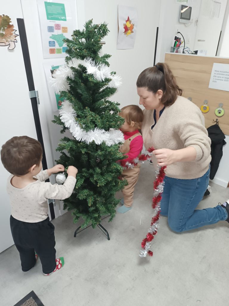 Pour les fêtes de fin d’année, la crèche est décorée avec un sapin dans le hall d’accueil.