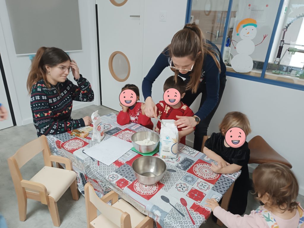 Deux à trois fois par an, des ateliers cuisines avec les enfants sont organisés pour des évènements avec les familles (Noël, juin…).